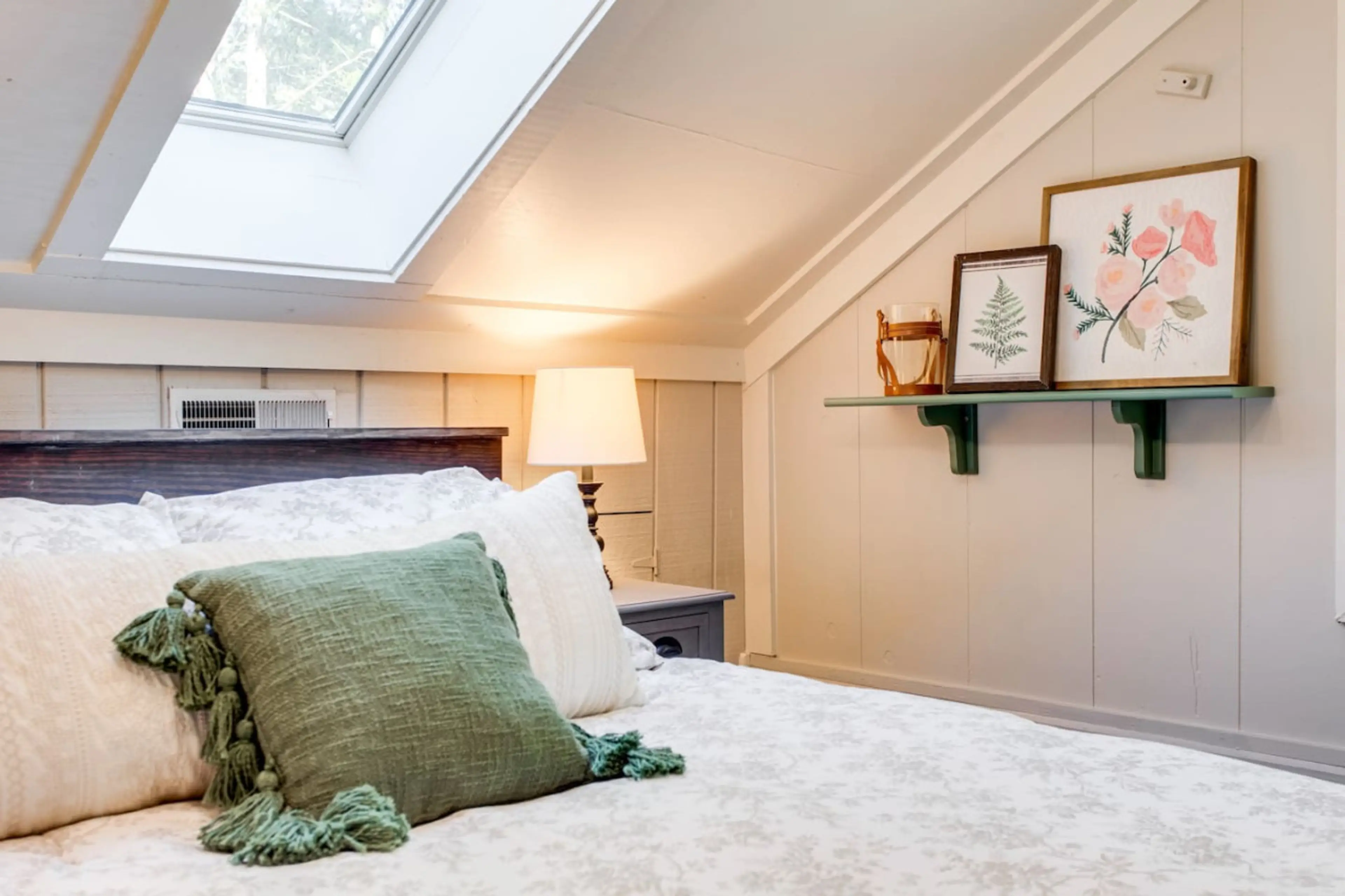We were attending graduation events in Nashville and only in town for 2 nights. We needed a place that was pet friendly and had room for 5 adults ages 21-85. There was plenty of space to spread out and relax when we weren’t out and about. I especially liked the skylights in the upstairs bedrooms. Check-in and check-out was easy. Communication was quick. My college aged sons liked the disc golf goal, and the fire pit would have been fun if we had spent more time at the cabin. I’d definitely stay there again if in the area.